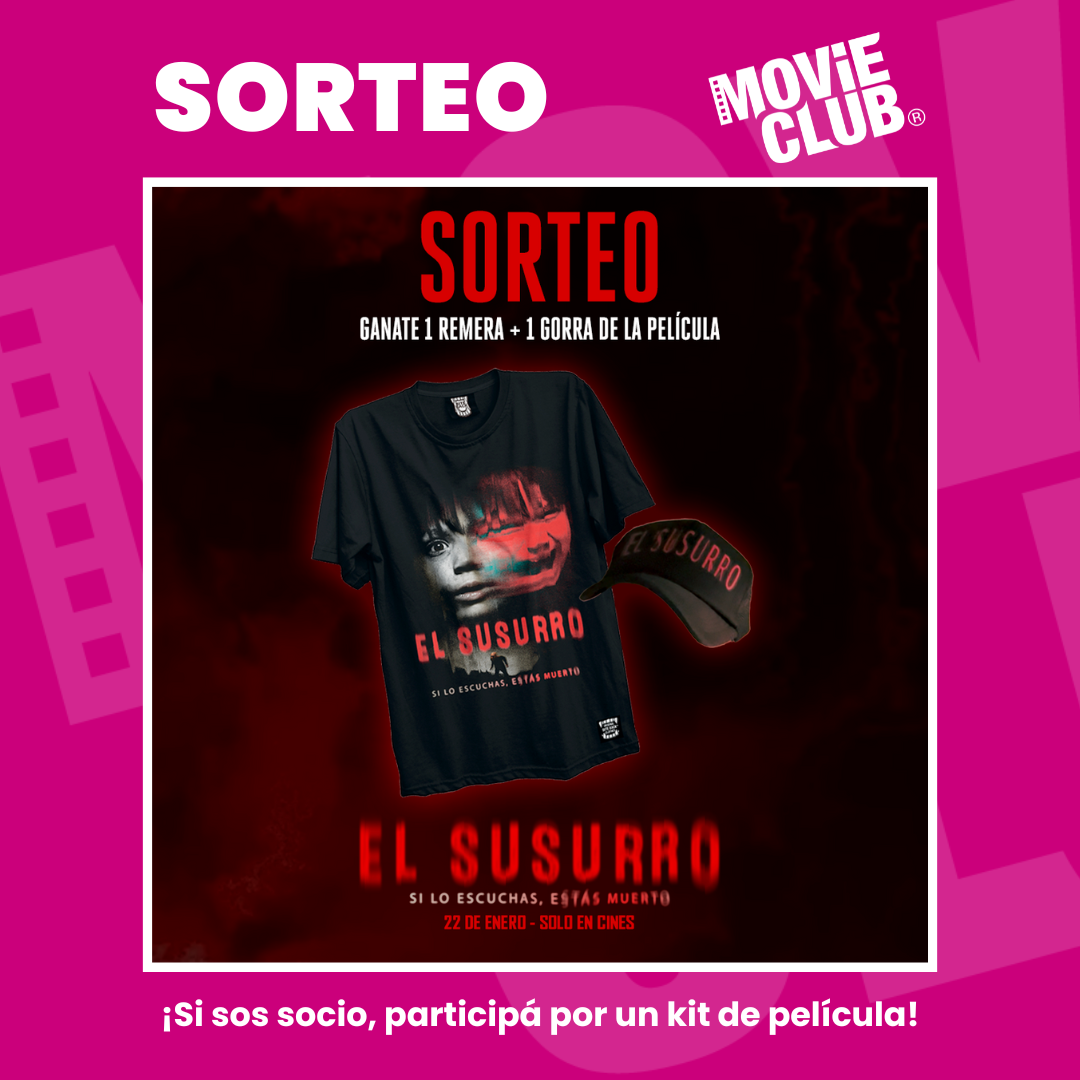 Sorteo El Susurro Participá… y ¡ganá! 🔥 NUEVO SORTEO 🔥 ¡Participá y ganá un kit exclusivo de merchandising de “El Susurro “! 🍿✨ El kit contiene una remera y una gorra de la película. ¡Tenes tiempo de participar hasta el 28/1! ¡No te pierdas la película en Cinépolis! 🎬 Completa mi formulario en linea. Exclusivo para socios MovieClub. Asociate Ahora! Ver + Concursos